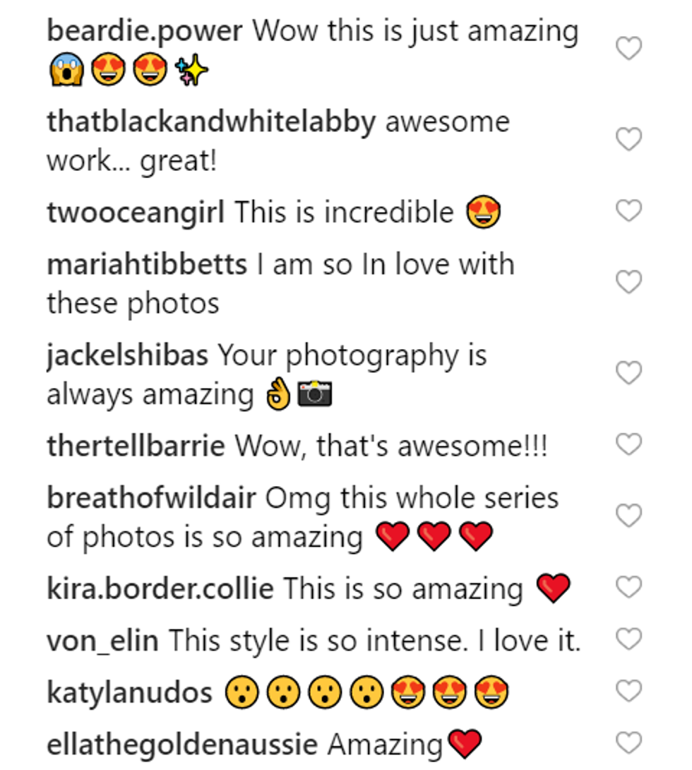 Those agility dogs just so happened to be great models. Jess Bell's final series of dogs covered in holi powder is honestly pretty incredible.