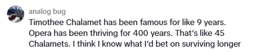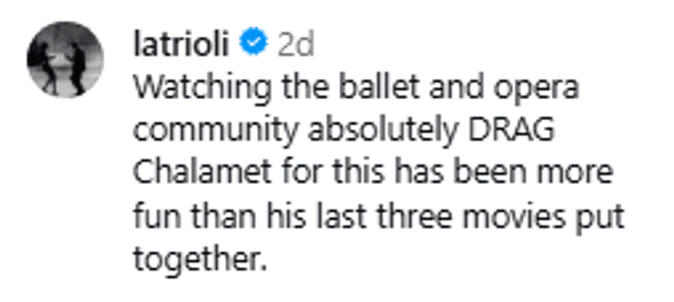 Viewers were unsettled by Chalamet's uncultured take on the opera and the ballet.