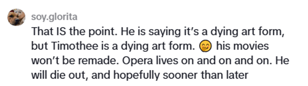 Viewers applauded the Met for its response and ridiculed Chalamet for his comments.