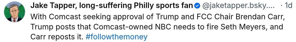 Trump’s FCC chief Brendan Carr authored the chapter about the FCC for Project 2025 — a white nationalist manifesto.Trump called for NBC to fire comedian Seth Meyers because the American Taliban doesn’t allow comedy.