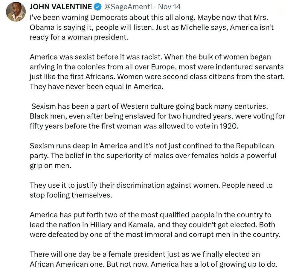 "You know, we got a lot of growing up to do and there's still, sadly, a lot of men who do not feel like they can be led by a woman and we saw it."