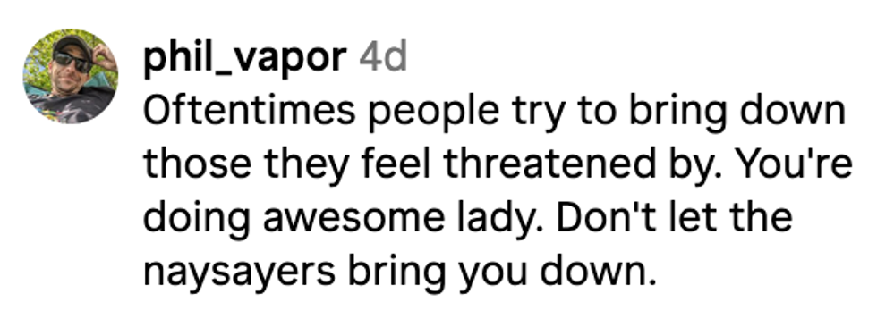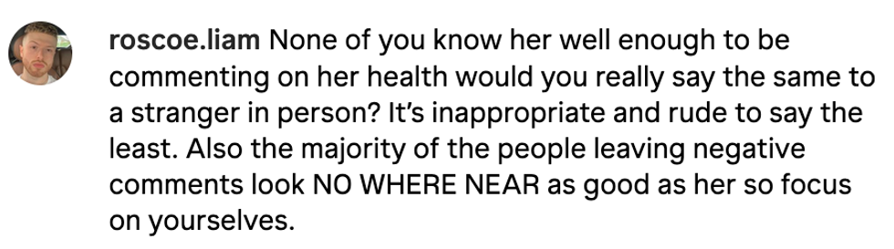 Examples of some unsolicited opinions in response to one of her selfies included a user who, under the guise of concern, wrote: