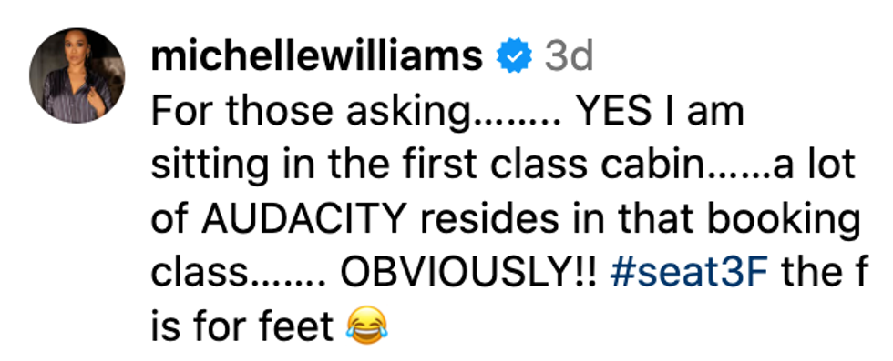 Michelle Williams found herself in an all-too-relatable mid-flight nightmare—and she had the receipts to prove it.