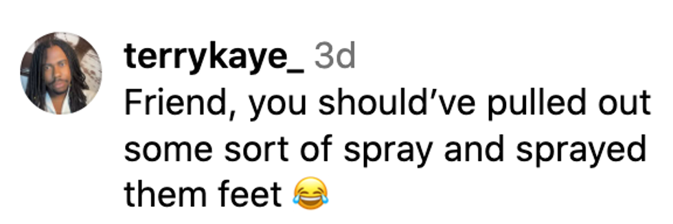 In the comments, she revealed she eventually resolved the issue by elbowing the mystery foot.