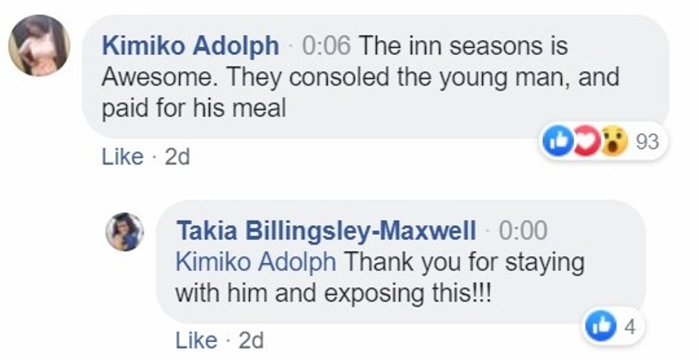 The Inn Season Café manager, Erin Frey came outside to defend Meyers as he spoke with the police as well.