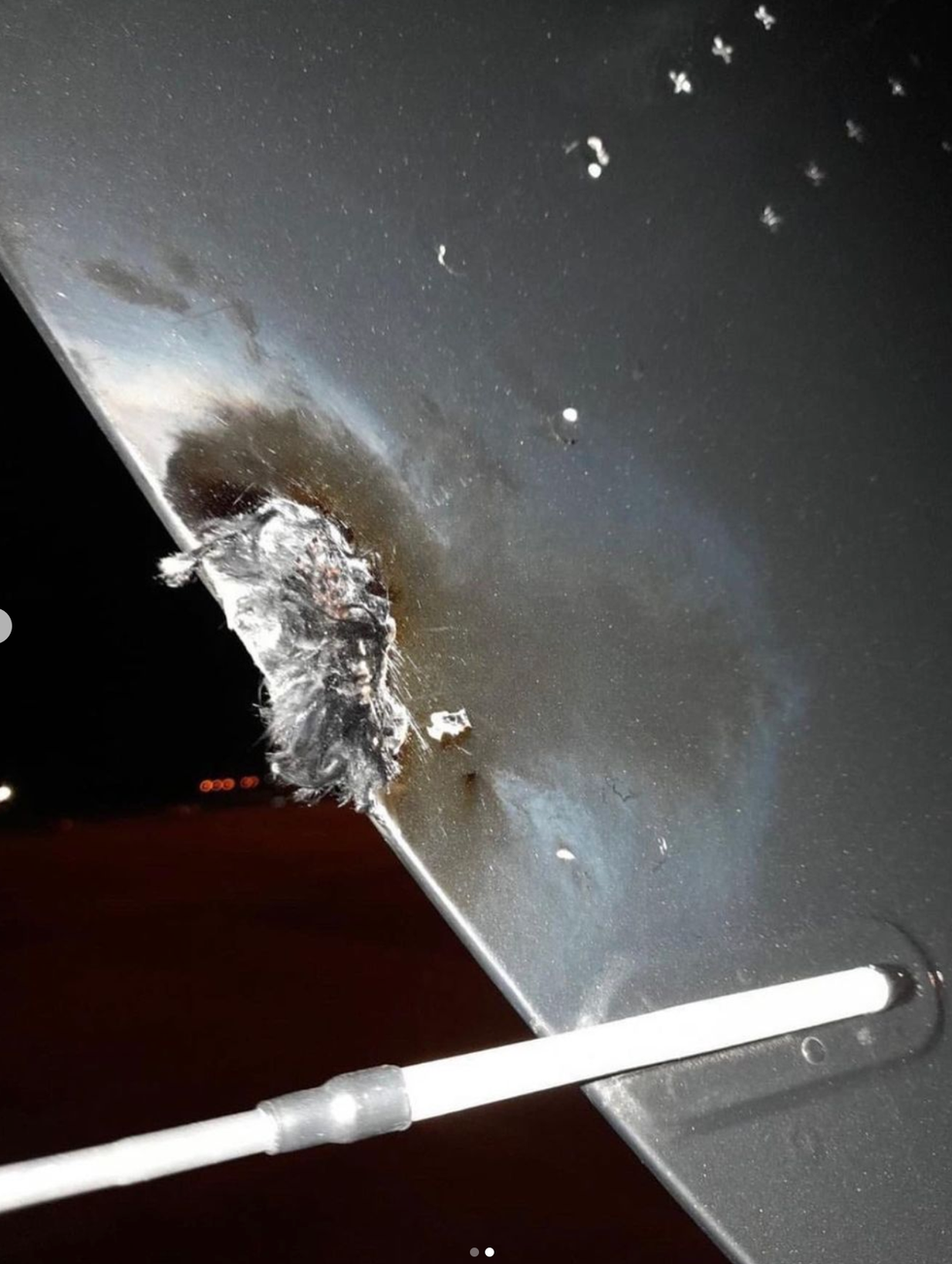 Cyrus also posted a photo of the damage inflicted on the exterior of the plane, presumably from the lightning strike.