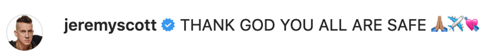 "My crew, band, friends and family who were all traveling with me are safe after an emergency landing."