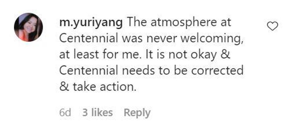 "There have been countless racist incidents at Centennial with no repercussions."