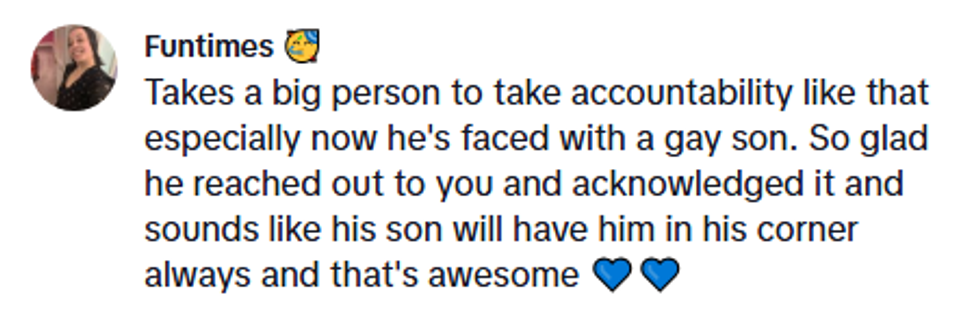 "The reason I wanted to tell you all this is I've got a son now. He's 15, and he told me he's gay. Man, all I thought about when he told me that was I hope people are nicer to him than I was to you."