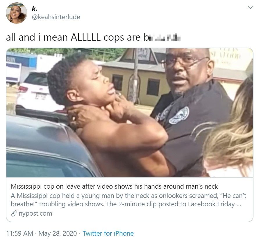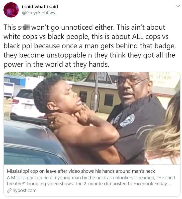 This incident is particularly horrifying with the recent news of the death of George Floyd at the hands of a Minneapolis police officer, after exclaiming he couldn't breathe.
