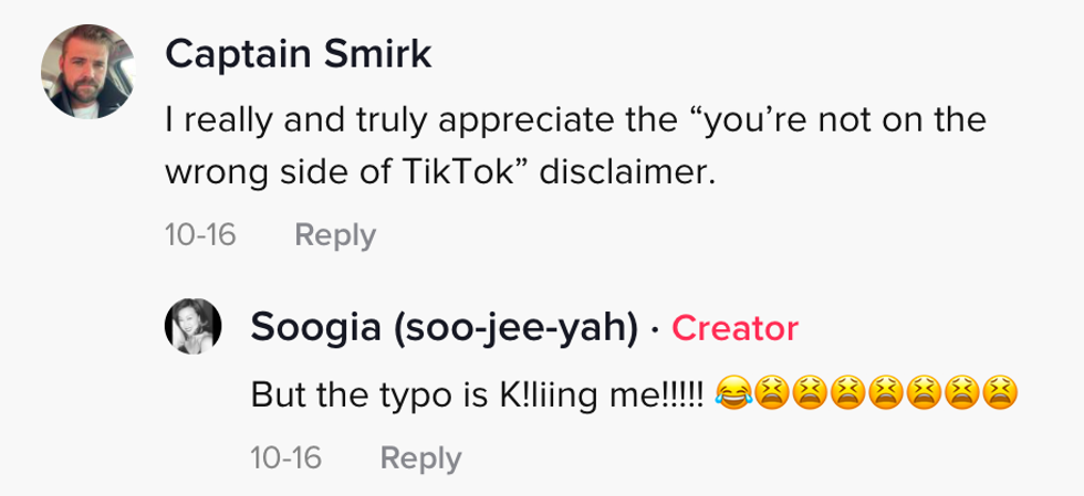 First, the soogia started out by reassuring viewers they were not on the "wrong side" of TikTok.