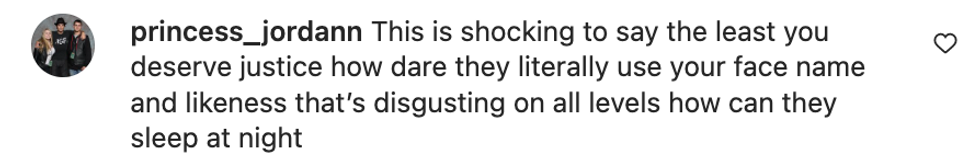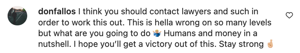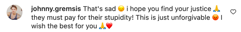 Fans of the model commented with their support, stating they hope she is successful in her quest for justice.
