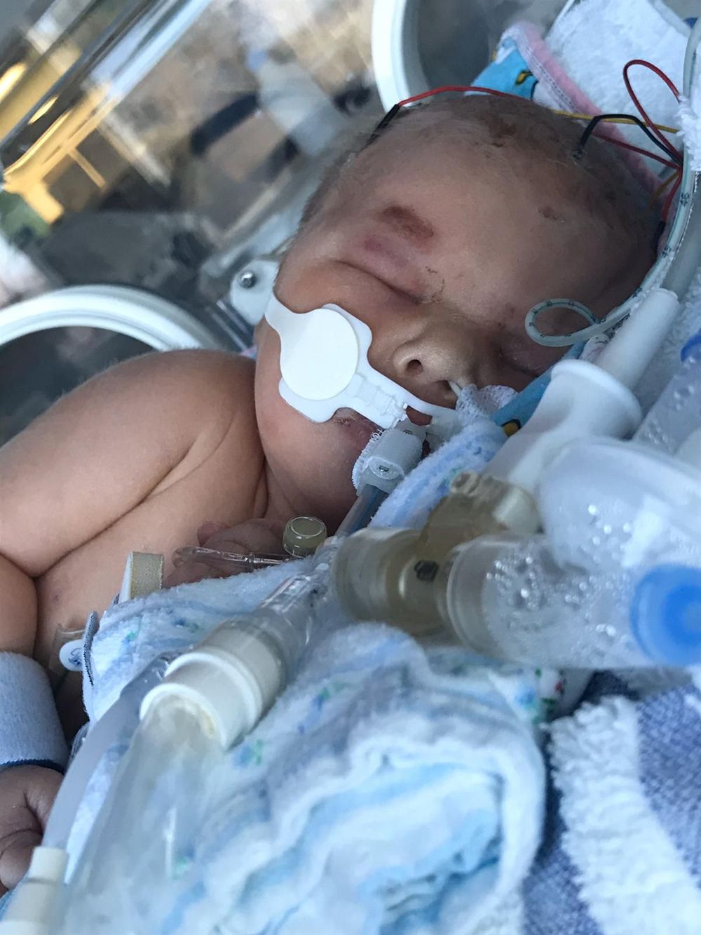 “He was born weighing 8lb 2oz, so he wasn't exactly small, but in the incubator, surrounded by all these wires and equipment, he looked tiny," she recalled.