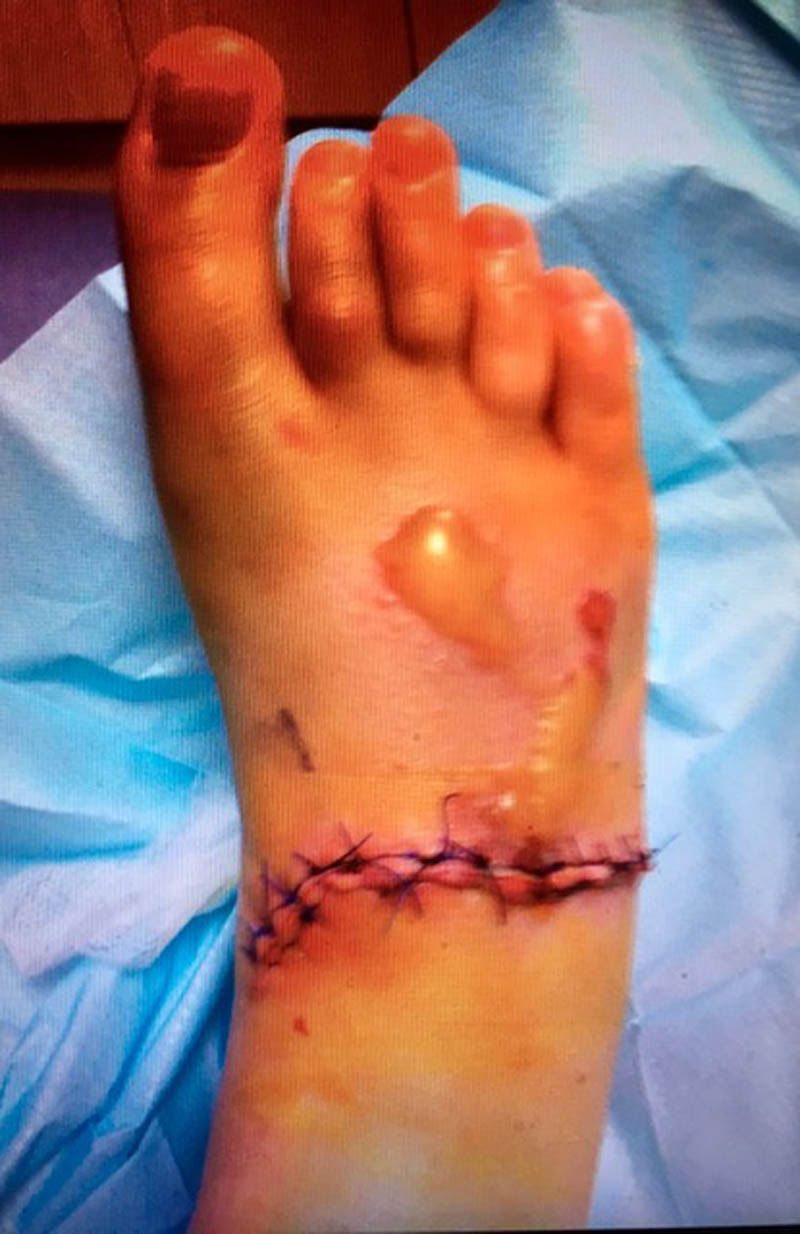 After six months, Montgomery eventually had a six-hour operation, again at DGRI, where the damaged cartilage was removed from her foot and replaced with a bone graft from her left hip bone.