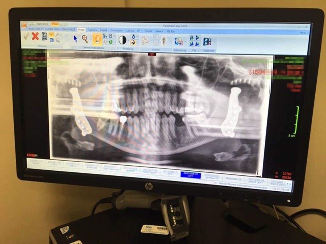 Montgomery was put on a waiting list for surgery. In the meantime she had four rounds of saline injections administered into her jaw to wash away debris from the eroding joints, as an effort to alleviate the pain.