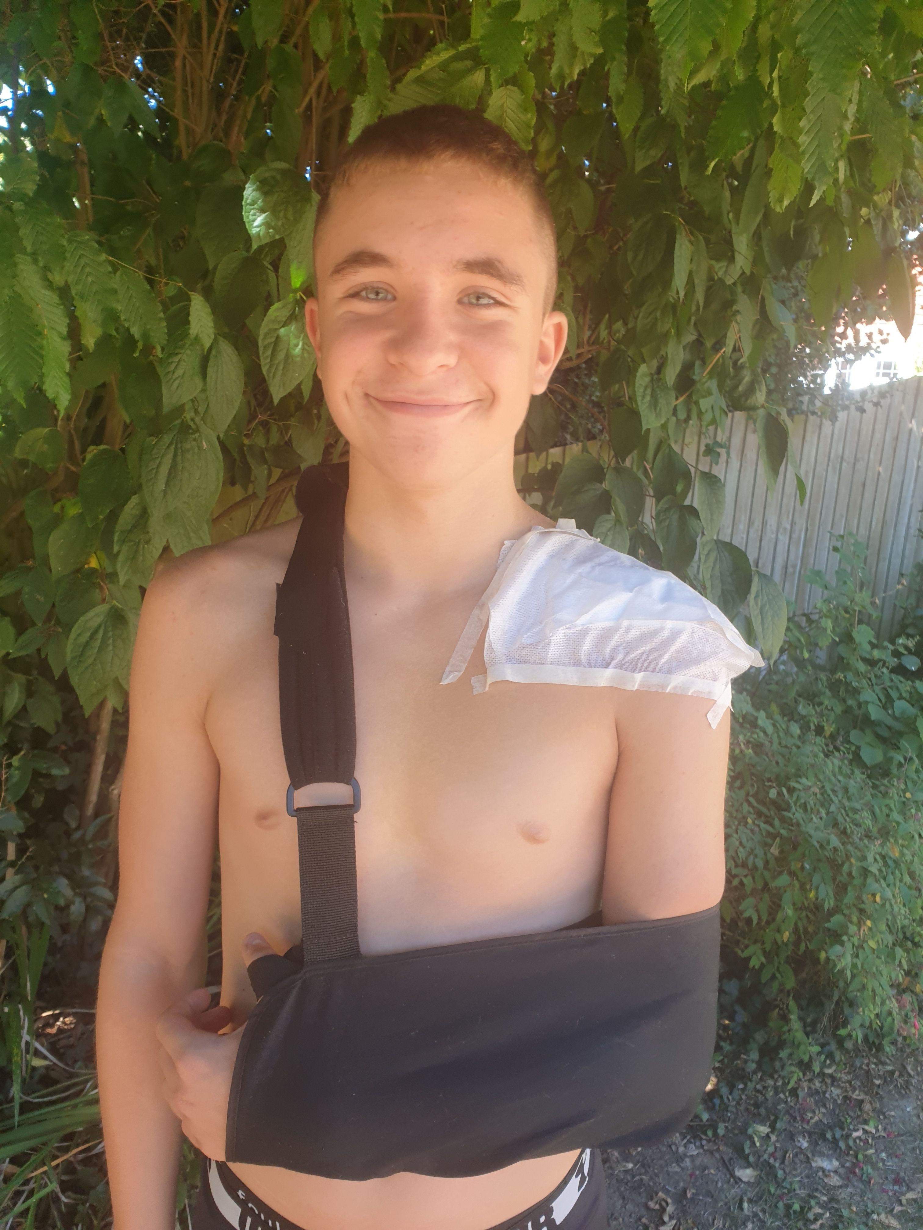 Sent home with a sling and painkillers, he returned to hospital two days later for an operation to insert a metal plate into his shoulder and retrieve the piece of bone that had pierced his muscle.