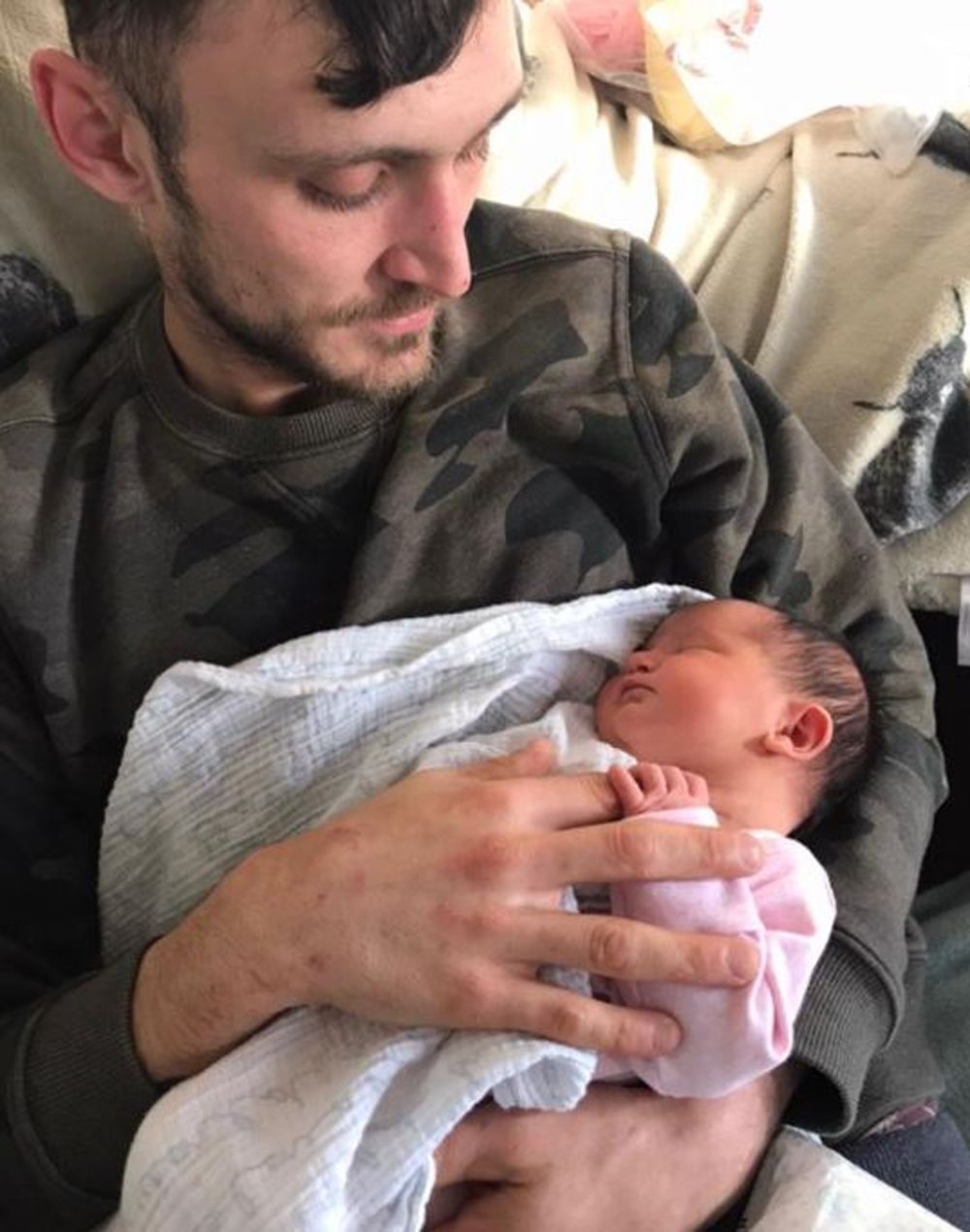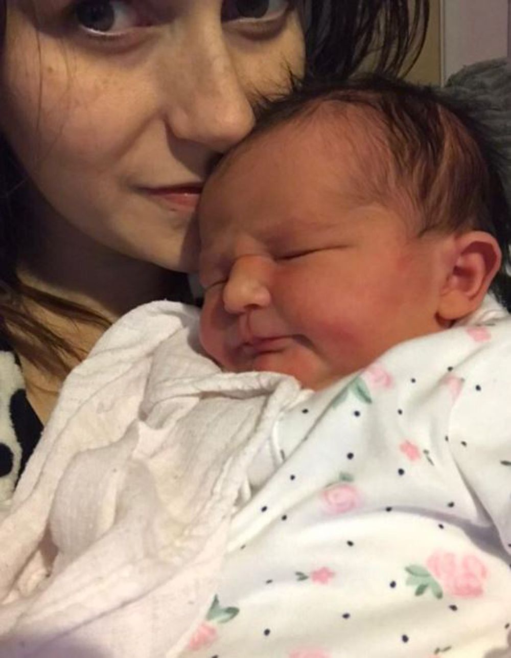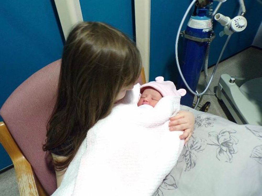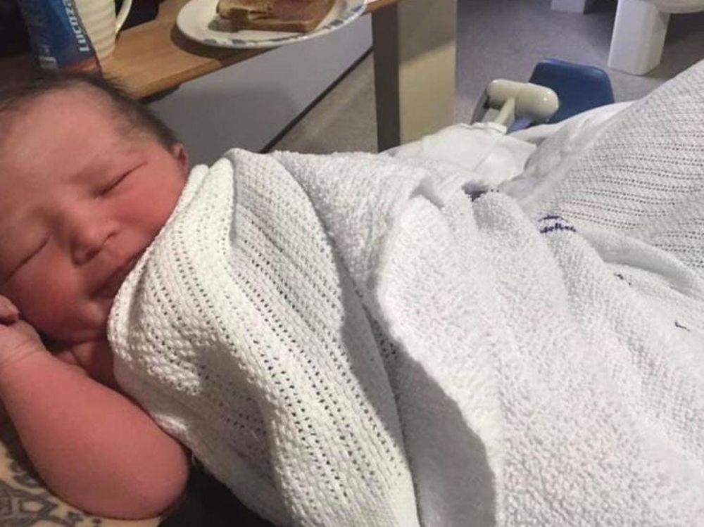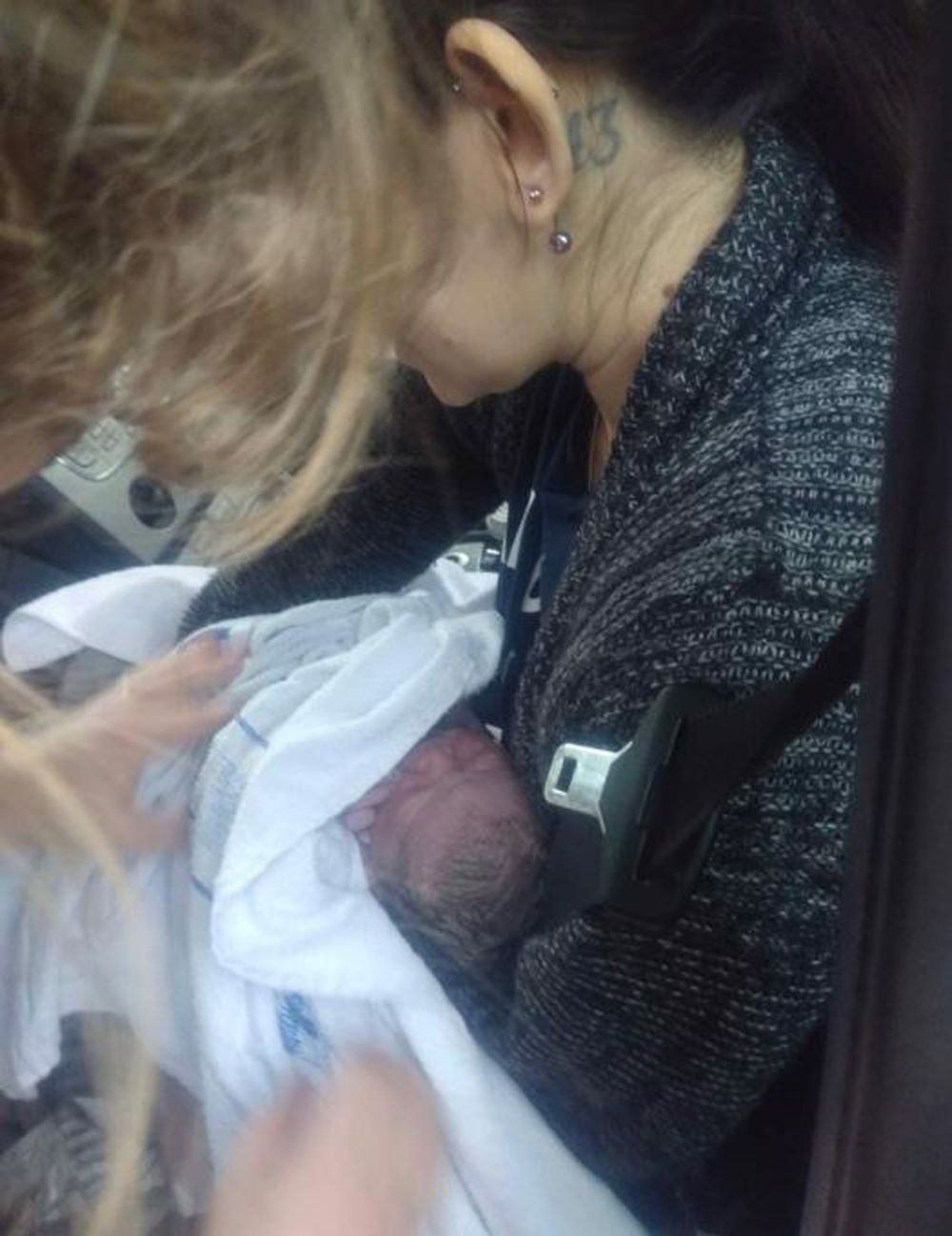 With no idea how long the umbilical cord was, Russell just kept baby Elsie safe on her lap, tucked against her stomach, snuggled into the long, warm cardigan she was wearing.