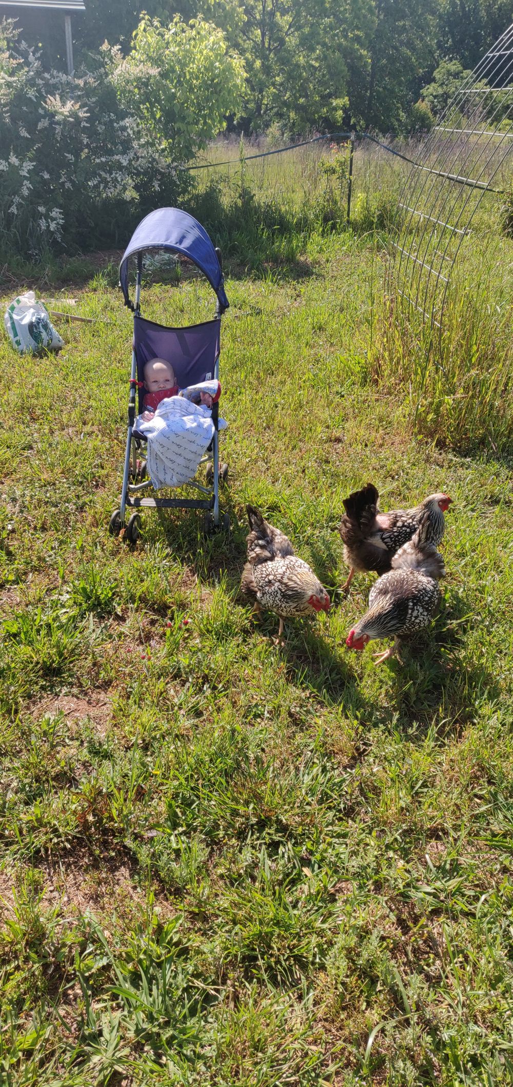They acquired 12 laying hens, five cockerels, three cows, two goats and two cats.