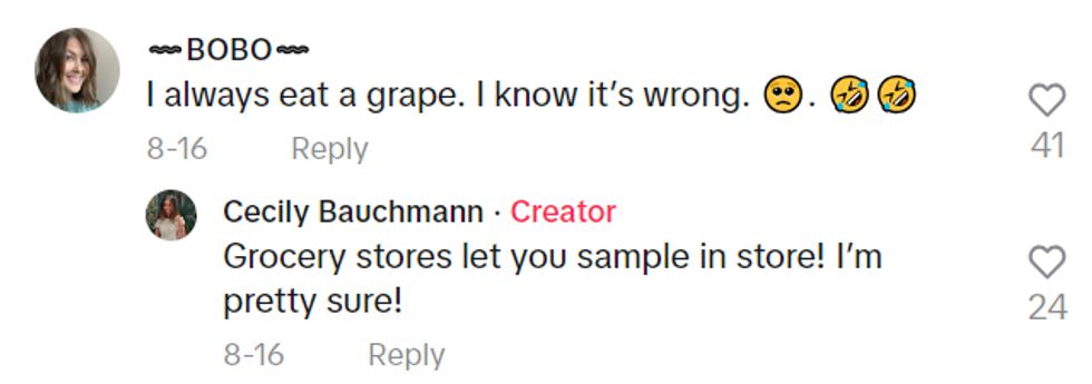 Some completely agreed with Bauchmann and confessed to eating in the grocery store all the time.