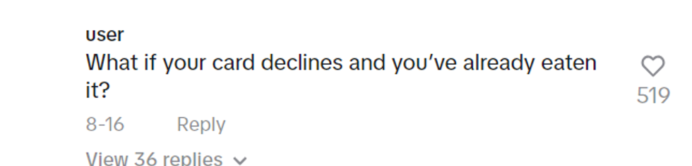 Others pointed out that because Bauchmann did not own the sushi yet, she was essentially stealing the store's property; not to mention the possibility that a card could be declined at the register or she could not have enough cash on her, making her unable to pay for the sushi after the fact.