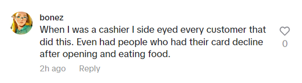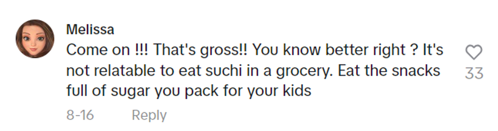 Though one cashier in the comments said that cashiers are not "paid enough to care," the cashiers in the comments were overwhelmingly against eating the sushi because it was unsanitary and technically stealing—and it also made the mom influencer's trash their responsibility, which was not a duty they had signed up for.