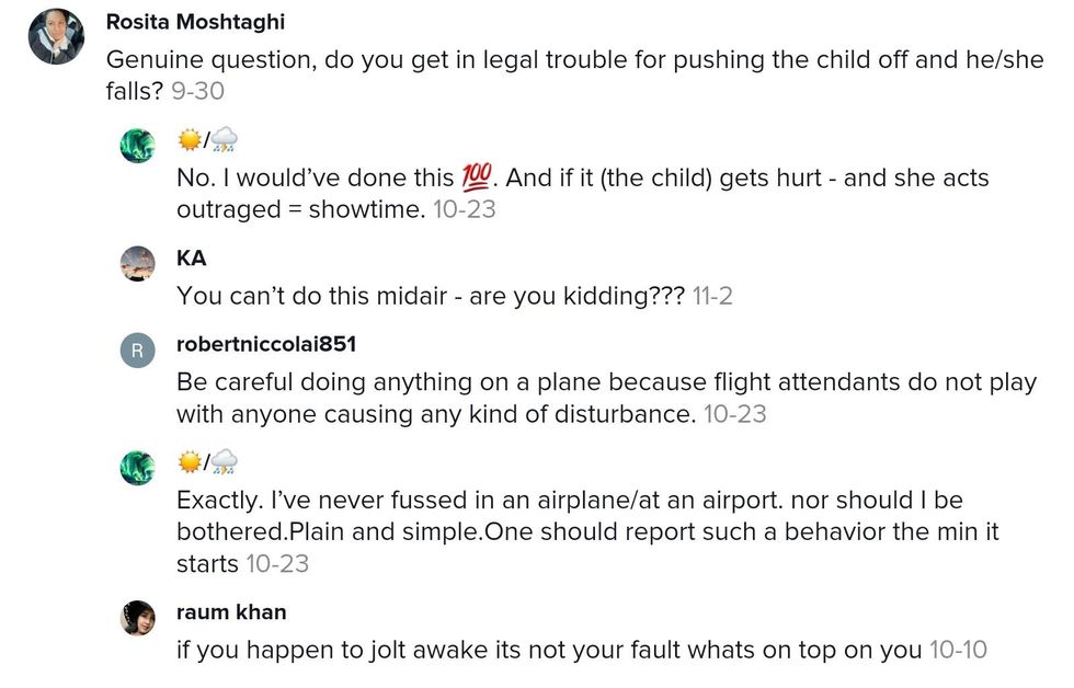 The mother seemingly got her revenge on the TikToker by allowing her child to do whatever they wanted during the flight.