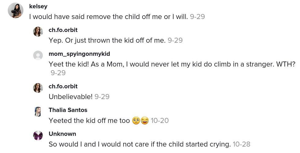 Either way, it's less than responsible to allow a child to climb on a stranger.