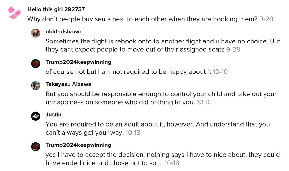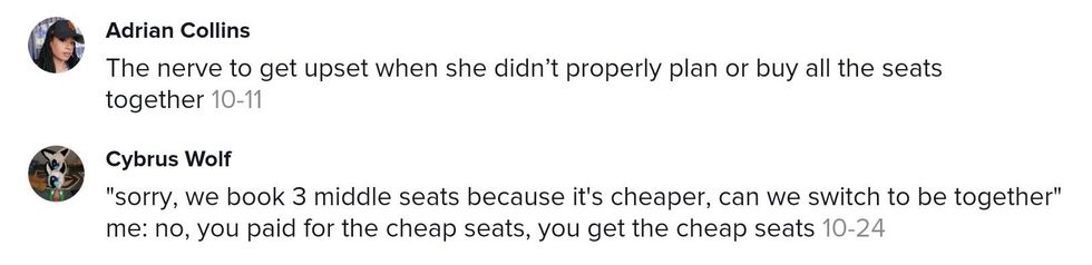 While it may have been easy enough to switch seats, it's understandable the TikToker didn't want to after having previously reserved that specific seat.