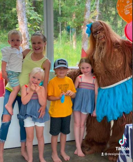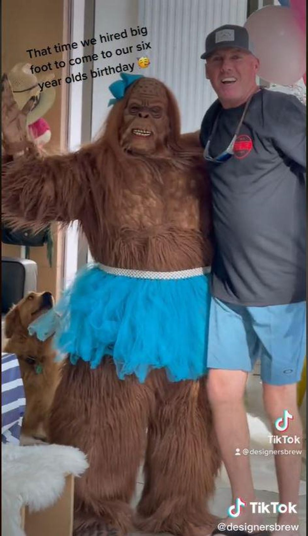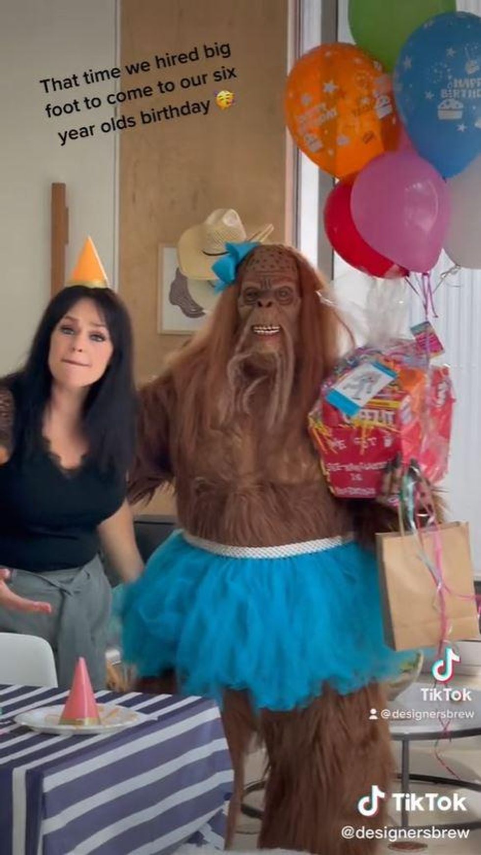A hilarious TikTok video shared by Brett (@designersbrew) who absolutely traumatized her six-year-old by hiring Bigfoot to come to her house as a birthday party surprise.