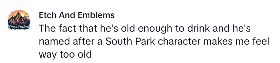 "The moment my mother in law stuns my husband by telling him he's named after a 'South Park' character."