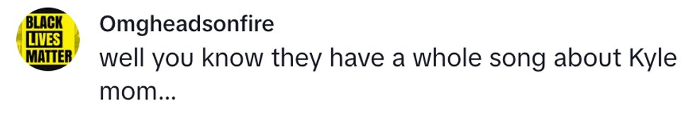 A few people pointed out the bitter irony of the woman naming her son after Kyle, as that would effectively make her "Kyle's Mom."