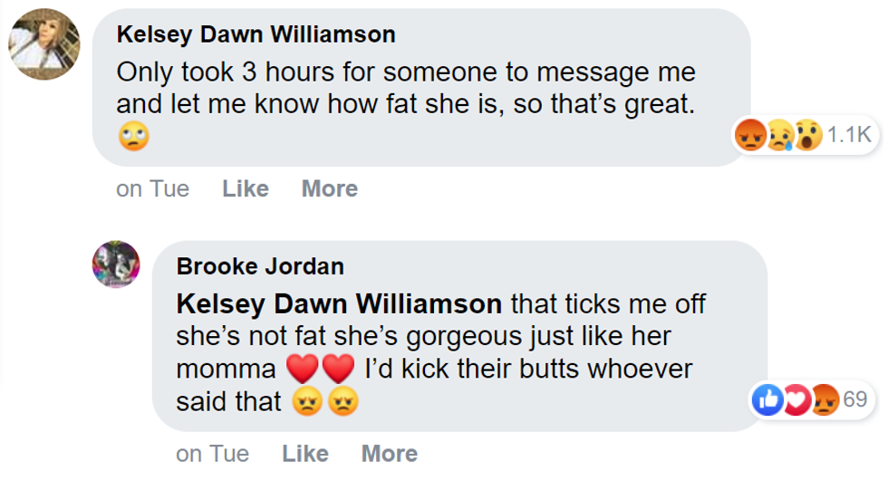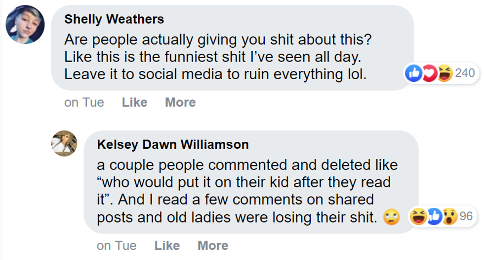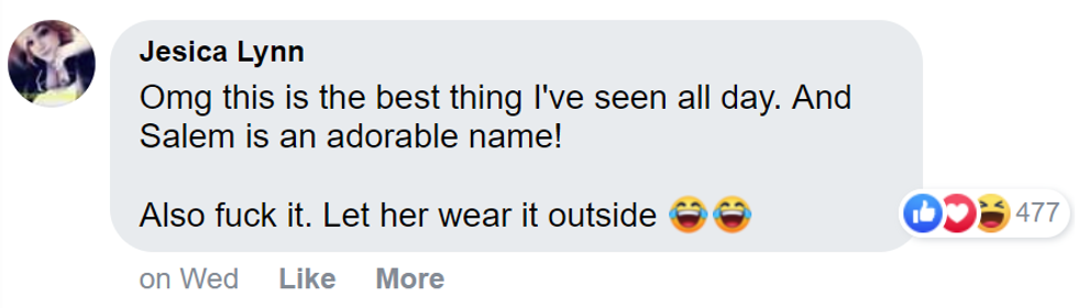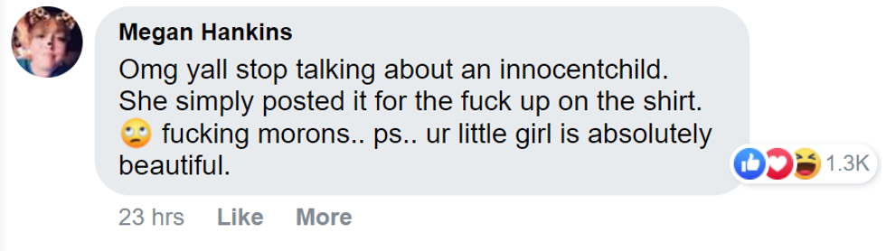 Some commenters have made some insulting statements about Salem, asking why someone would let their toddler wear such a shirt. Comments that have since been deleted also questioned the young girl's weight.