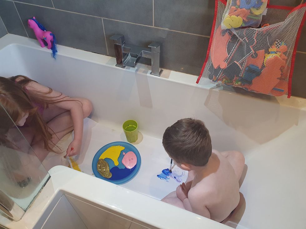 With both children at home while UK schools remain closed because of the pandemic, giving the duo water-based paints, brushes and paper, dressing them in swimwear to avoid messing up their clothes and plonking them in the bath had, Donna thought, been one of her most ingenious ideas.