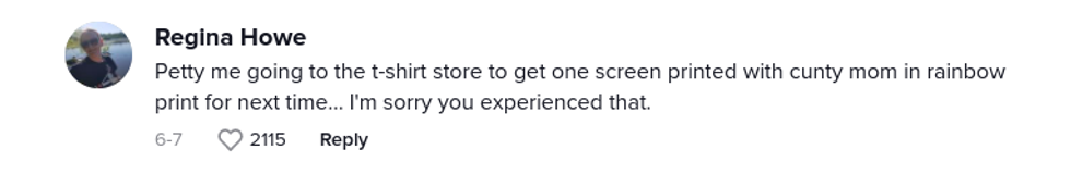 In her TikTok video, the mother of three who uses Unapologetically Me as her account name—@ali.momof3—discussed how while she was watching her son's soccer game, she overheard another parent making comments about the Pride shirt she was wearing.