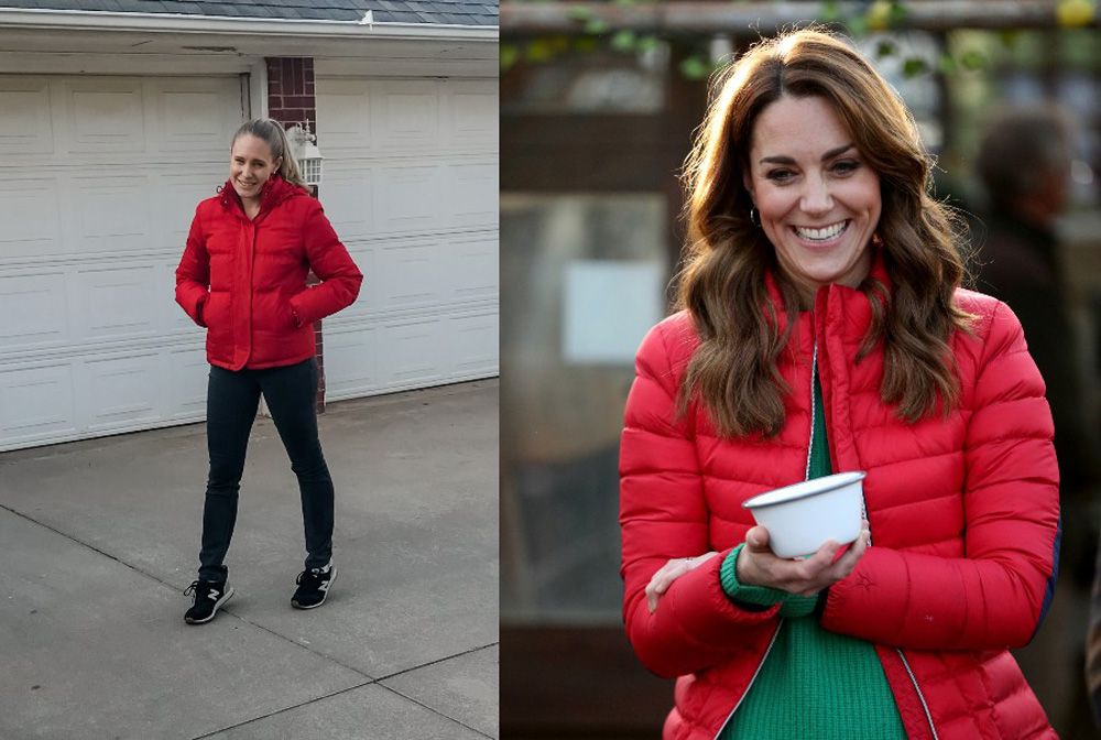 She also owns Kate-inspired navy blazers, striped tops, gingham shirts, riding boots, trainers, trench coats and a red puffer jacket, just like the one the Duchess was pictured wearing on a visit to east London's Olympic Park.