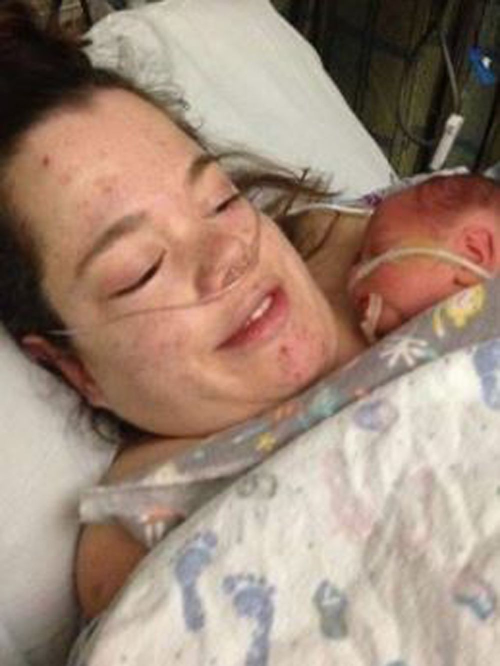 After three weeks in hospital recovering from an infection, and thankfully with no broken bones, she was sent home to start her new life as a mom.