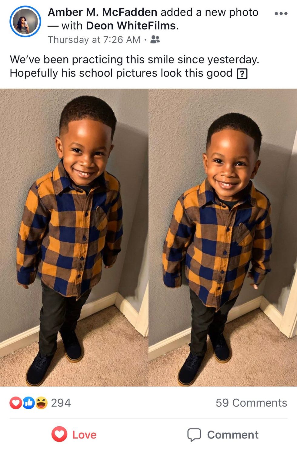 In a practice run at home the day before Picture Day, everything was as it should be. McFadden shared on Facebook two adorable photos of her smiling son, Landon, in a Picture-Day-worthy outfit.