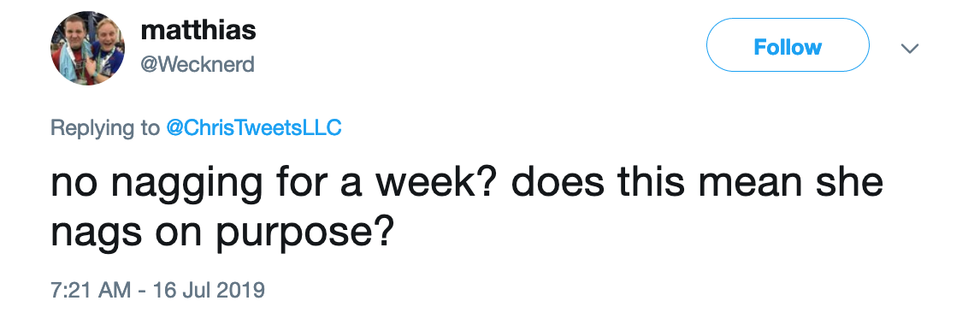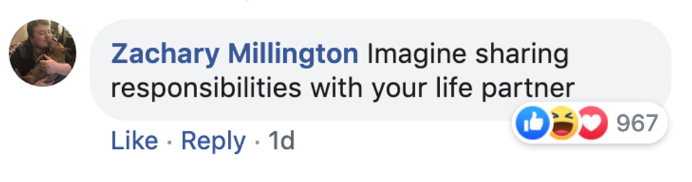 "It's her job to make him a better man, to 'provide' for him in terms of domestic tasks such as cooking and cleaning (because these are the women's jobs, right?), to make sure he's still existing as an adult."