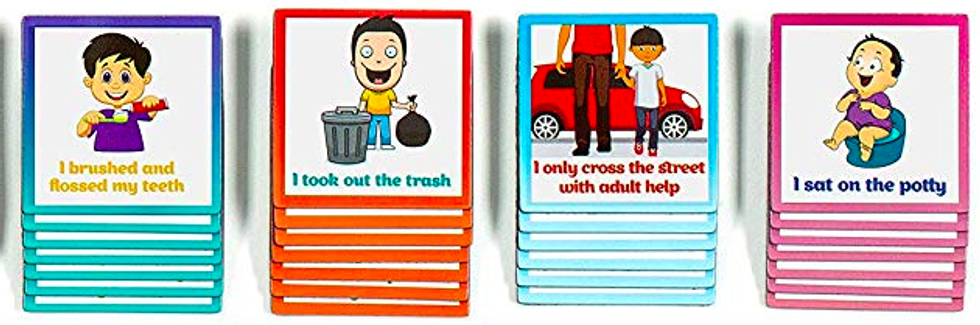 The accumulation of six stickers for "pack the kids' lunches, for example, earns daddy a "1 get out of the dog house free card."