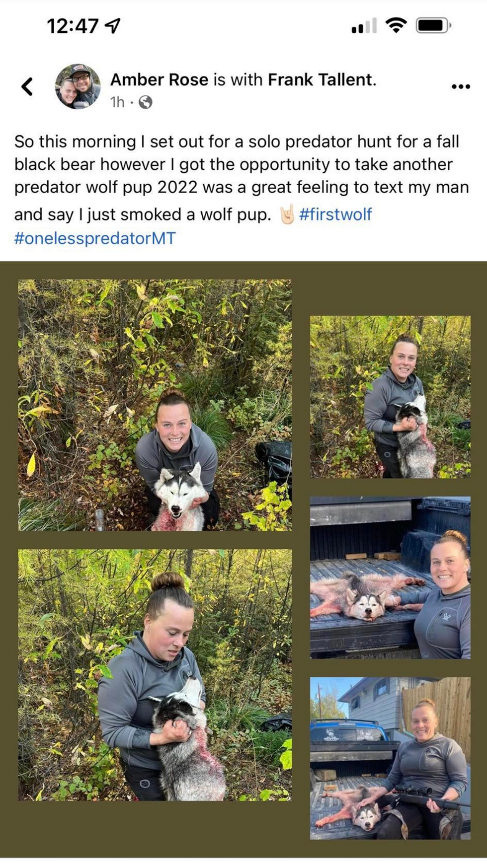 A Montana community is outraged after a woman bragged about shooting and skinning a wolf on social media when in fact the animal she killed was a husky.