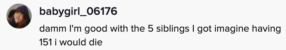 In the video, he said there is a "birthday party every 2 weeks," that he has "at least 8+ people" his same age to grow up with, and that "sibling rivalry can be with gangs of people."