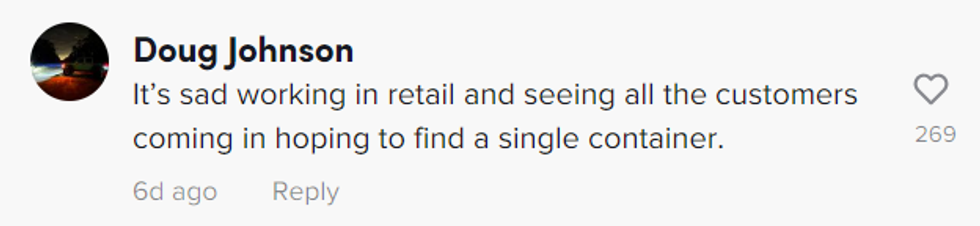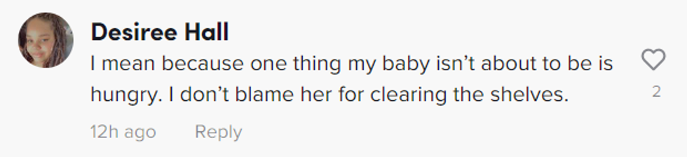 Just like when people couldn't find toilet paper and other important essentials at the start of the pandemic, people are less than likely to stay calm when they can't provide for their families, especially when there's a baby at home to feed.
