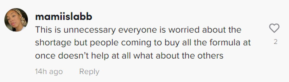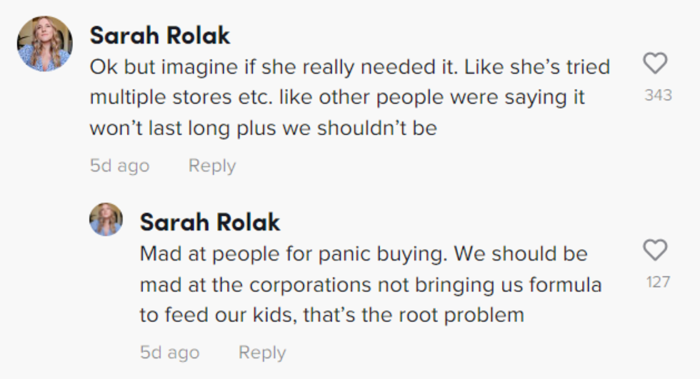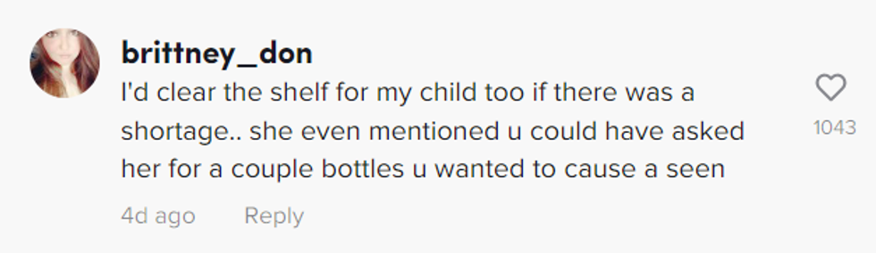 Most of TikTok could agree that even if the other mother wasn't causing the formula shortage personally, she was at least contributing to the panic that often surfaces when consumers are faced with empty shelves.
