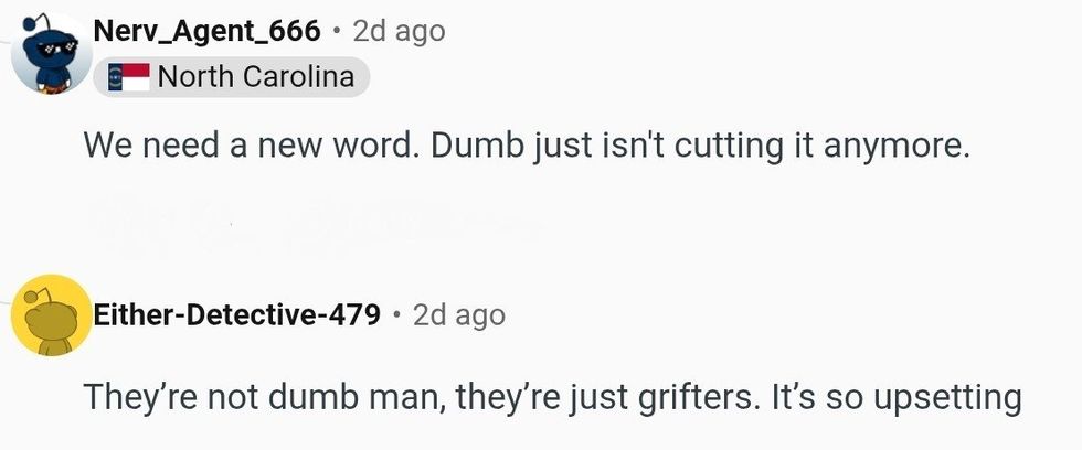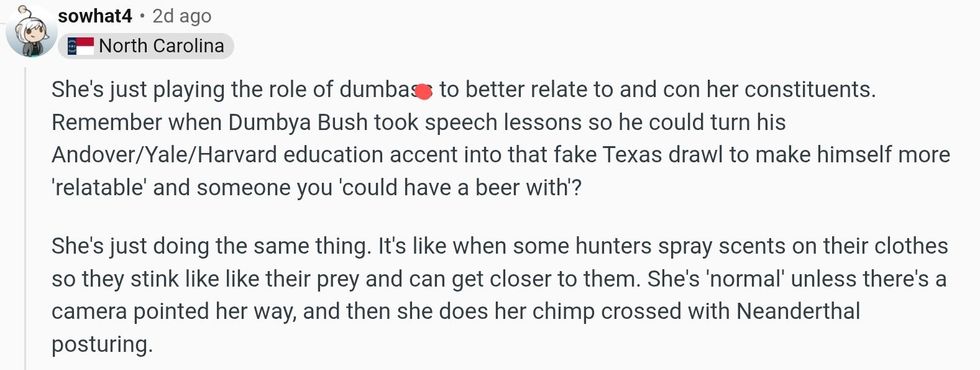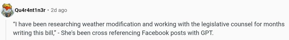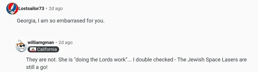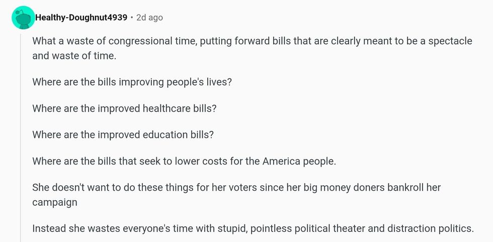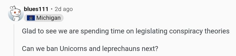 Not to be outdone—or out-dumbed—Georgia MAGA Republican Representative Marjorie Taylor Greene declared on X that she intends to bring federal legislation to counteract these things that aren't happening or that never existed outside of a conspiracy theorist's imagination.