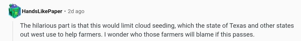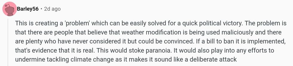 "I have been researching weather modification and working with the legislative counsel for months writing this bill."