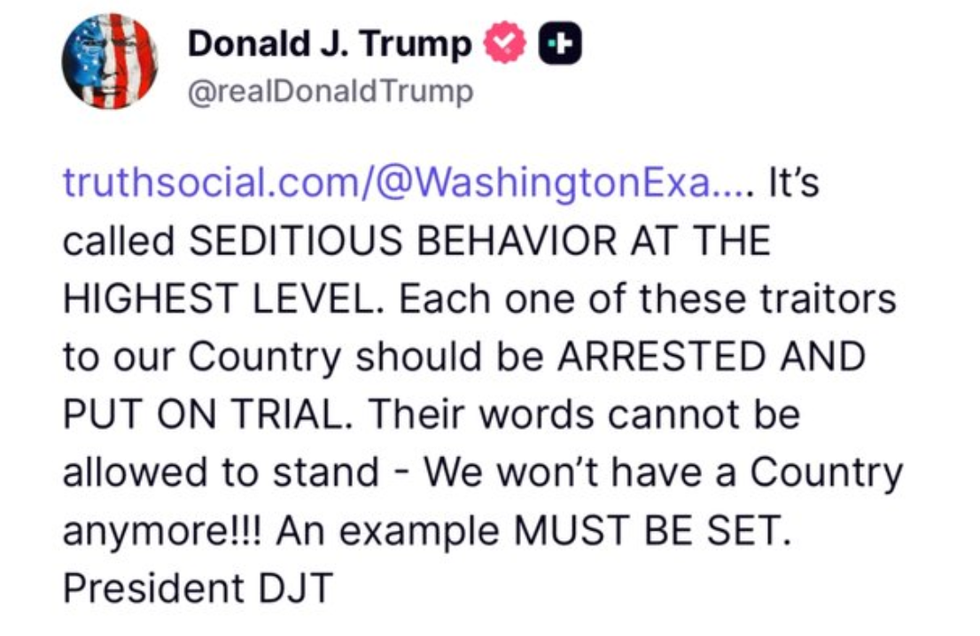 “This is really bad, and Dangerous to our Country. Their words cannot be allowed to stand. SEDITIOUS BEHAVIOR FROM TRAITORS!!! LOCK THEM UP???"
