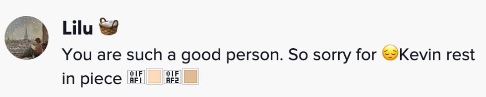 The clip's background showed a screenshot of an obituary for a man named Kevin, who was in a fatal motorcycle accident.