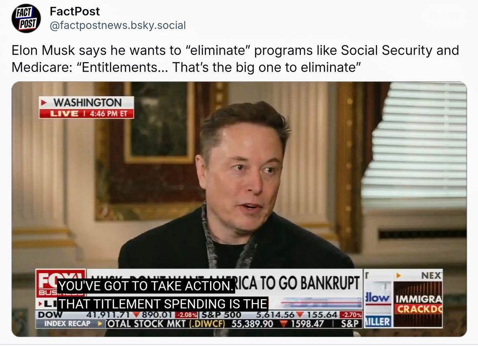 About the only honest statement in the interview was Musk divulging his plan to cut Social Security and other social safety net programs.