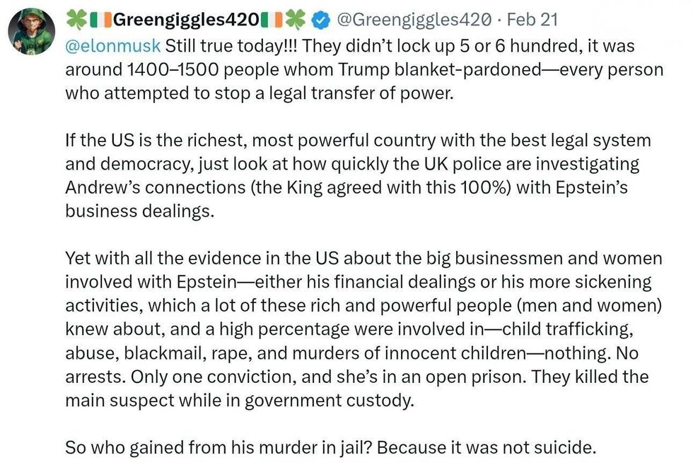 Reactions to the post varied wildly with some agreeing with Musk and others accusing him of being part of an Epstein cover-up.