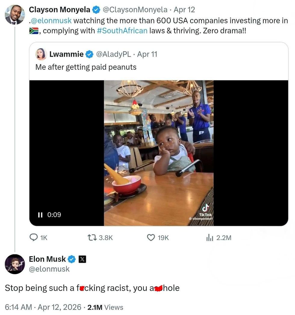 When Department of International Relations spokesperson Clayson Monyela pointed out other American ccompanies had no issues following the laws of countries they do business in, Musk responded like the petulant child Monyela implied he was.